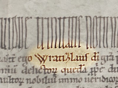 Photo: The direct mentioning of Duke Vratislaus in the copy (i.e. false document) of the founding charter. See National Archives of the Czech Republic, Archive of the Vyšehrad Collegiate Chapter (1130–1523) 4,in: monasterium.net, available online.