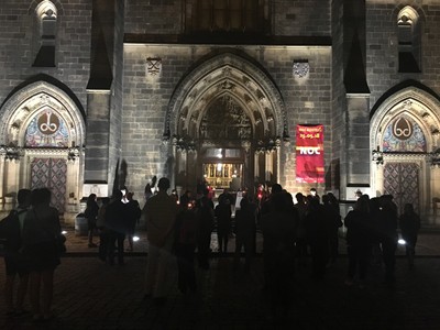 Noc kostelů jsme zahájili v 17:45 hodin vyzváněním zvonů a mši svatou v bazilice sv. Petra a Pavla a ukončili zastavením u vyšehradské Madony a modlitbou za českou zemi a její obyvatele doprovázenou výběrem skladeb zvonkohry přesně o půlnoci.