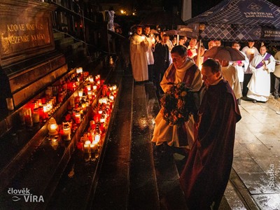 03.11.2025 | V neděli 2. listopadu 2025 sloužil pražský arcibiskup Mons. Jan Graubner společně s kapitulou mši svatou za všechny věrné zemřelé. Po mši svaté následovala modlitba ze zemřelé na vyšehradském hřbitově u hrobky Slavín, kterou vedl děkan kapituly P. Michal Němeček. Hudební doprovod zajistili bohoslovci Arcibiskupského semináře a Filip Šťovíček (varhany).