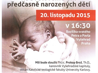 V pátek 20. listopadu 2015 v 16:30h bude v bazilice sv. Petra a Pavla na Vyšehradě pod záštitou Vyšehradské kapituly sloužena mše svatá za všechny děti, kterým byl odepřen dar života, za děti, které si nesou kříž bolesti a utrpení, za maminky, jejich lásku a naději, za rodiče, blízké a všechny, kteří pomáhají.